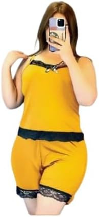 الطقم مكوّن من شورت قصير مخطط وتوب علوي، مصنوعين من خامات ناعمة ومناسبة للاستخدام اليومي أو النوم.